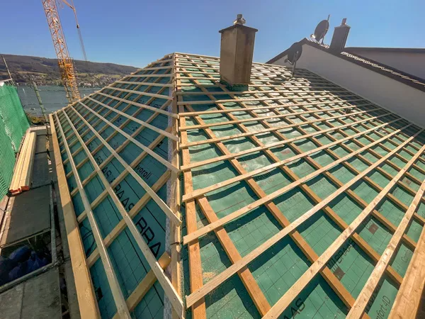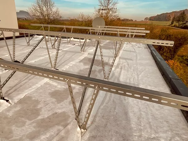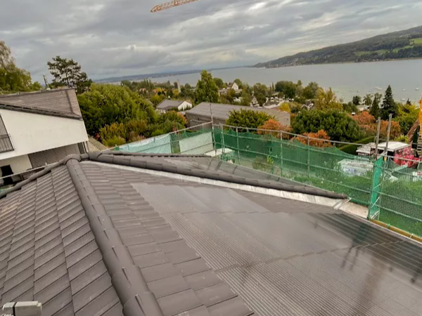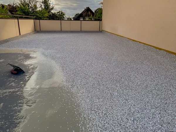 Flachdachabdichtung mit extensiver Dachbegrünung auf einem Carport